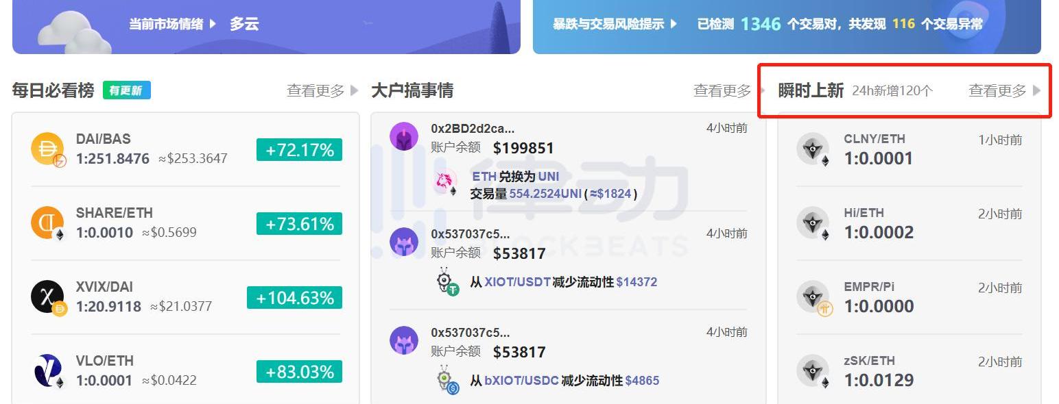 不过,如果不是密切关注AC、MollyWintermute、SuZhu等加密领袖,普通投资者要想从泥沙俱下的DEX上找到优质的投资标的,并不容易。据Topswap统计,即便现在不是流动性挖矿最火爆的时候,Uniswap每天上新的交易对数量还会超过100,这说明Uniswap确实吸引着很多新项目。