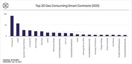 从Gas消耗能看清以太坊很多产品的兴衰,比如从DEX的兴起到DeFi再到NFT的轮动。Paradigm投资合伙人Casey用nansen数据编写了一个探索以太坊上耗费Gas最多的产品的可视化工具gasguzzlers.