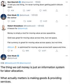 1月10日,SpaceX和特斯拉创始人ElonMusk在评论《比特币亿万富翁》作者BenMezrich“自己再也不会拒绝接受比特币支付”的推文时表示,“我也不会拒绝.